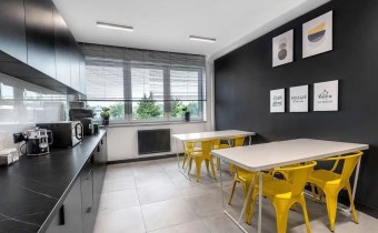 - każde skrzydło składa się z pomieszczeń biurowych o rozmiarach od 18 do 40 m2, w pełni wyposażonej kuchni, jadalni, wc damskie i męskie,